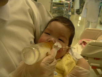 練習4日目。15分で20ccのミルクを飲んだよ。