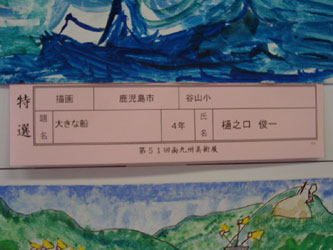 南九州美術展で特選(谷山小では俊一だけ!)に選ばれた俊一画伯の絵だよ。親ばかも入っているけど、俊一の絵が一番すばらしかった!久々に「感動」しました。