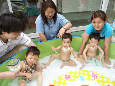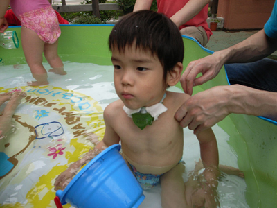 サークルでプール遊びをした時の様子だよ。