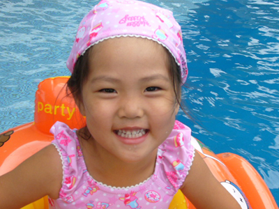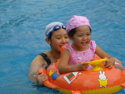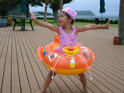 今年は浮き輪で一人で泳ぎました^^