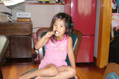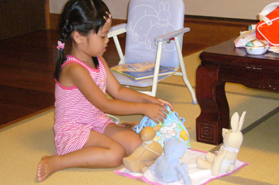 みいちゃんは日焼けして、なんだかまたお姉ちゃんになったね!