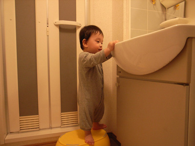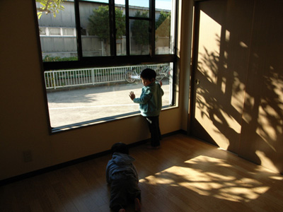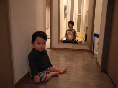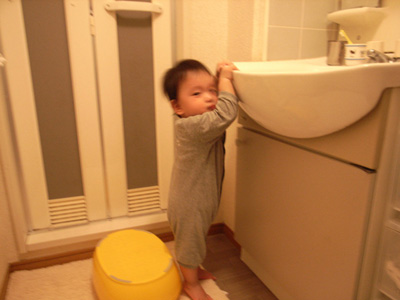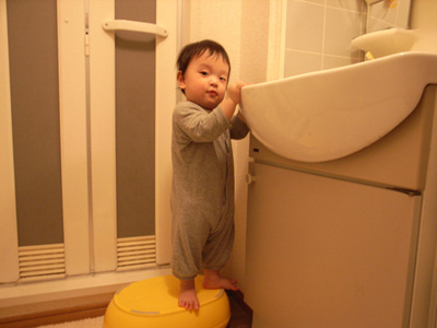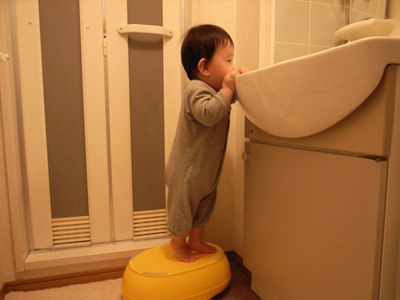 颯太のステップに登り、得意げなりょうた。