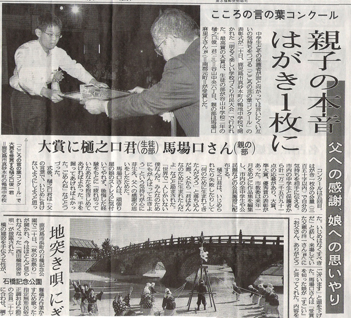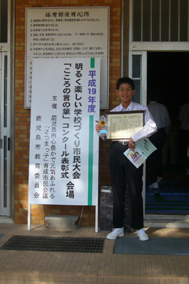 10月21日(日)の南日本新聞より。俊ちゃんが賞状を渡しているように見えます。^^) 俊一くん本当におめでとう!!!