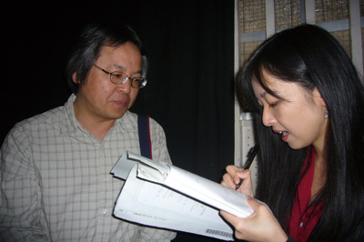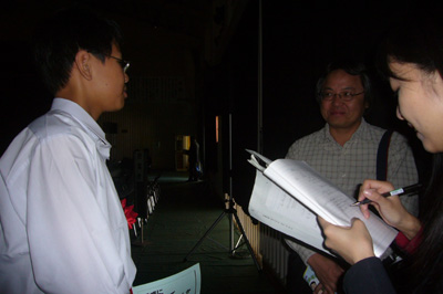 大賞受賞について、南日本新聞社から取材を受ける俊一。今日、写真入りででっかく載ったよ^^。インタビューの練習をしててよかった!?