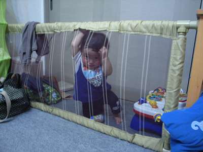 食事の邪魔をされないよう、りょーたをオリに入れることにしました。颯太の首のケアの時もね。でもすぐに壊されそう。。