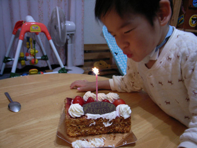 そーたがろうそくの火を吹き消したよ!!みんなうれしくて、吹き消すのを5回くらいやってもらったのでした。